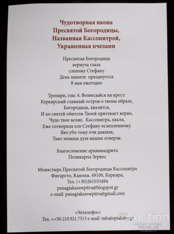 Немного географии: монастырь находится в нескольких километрах от центра города Керкиры на полуострове Канони, в той его части, которая носит название Фигарето (или просто в пригороде г. Керкира Канони). Адрес Монастыря Пресвятой Богородицы Кассопитра - Фигарето, Канони, 49100, Керкира, см. http://forum.pravicon.com/download/file.php?id=380 - там же тропарь праздника (сообщение qwerty от 09 янв 2018, 02:13: http://forum.pravicon.com/viewtopic.php?t=486#p1526 ). |