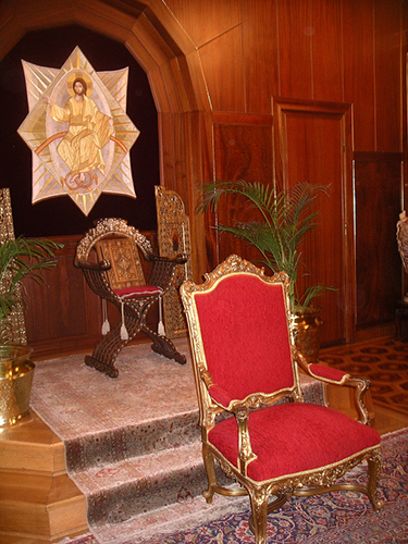 Подпись к иллюстрации: Тронный зал. Здание Вселенской Патриархии. (На троне возлежит Евангелие; Патриарх восседает на троне ниже)Эта иллюстрация пока нигде не использована