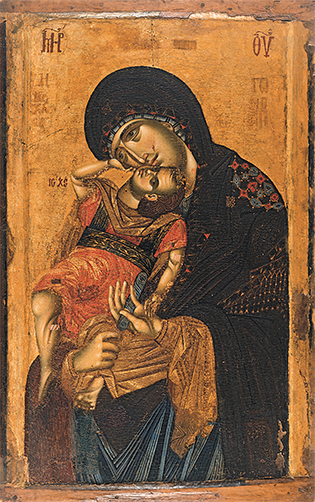 Подпись к иллюстрации: Икона Божией Матери "Кехаритомéни" ("Благодатная", "Пелагони́тисса"), кон. XIII - нач. XIV в. Монастырь Ксенофонт. Афон.Эта иллюстрация использована на страницах:
