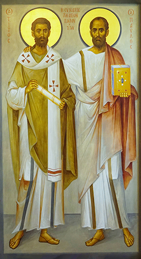 "Собор св. Апостолов Павла и Тита - основателей Критской церкви". Современная греческая икона