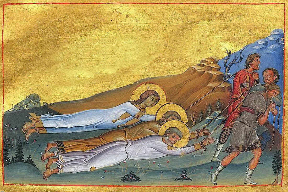 Подпись к иллюстрации: Мчч. Марк, Сотерих и Валентина Фиваидские. Миниатюра Минология Василия II (Константинополь, 985 г.). Ватиканская библиотека, РимЭта иллюстрация использована на страницах: