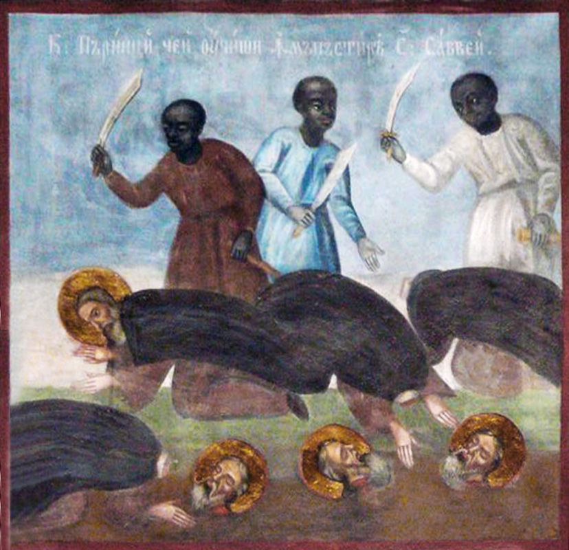 Мученичество прп. Иоанна Савваита и ихже с ним. Фреска (ок. 1990 г.), монастырь Секу, Румыния
