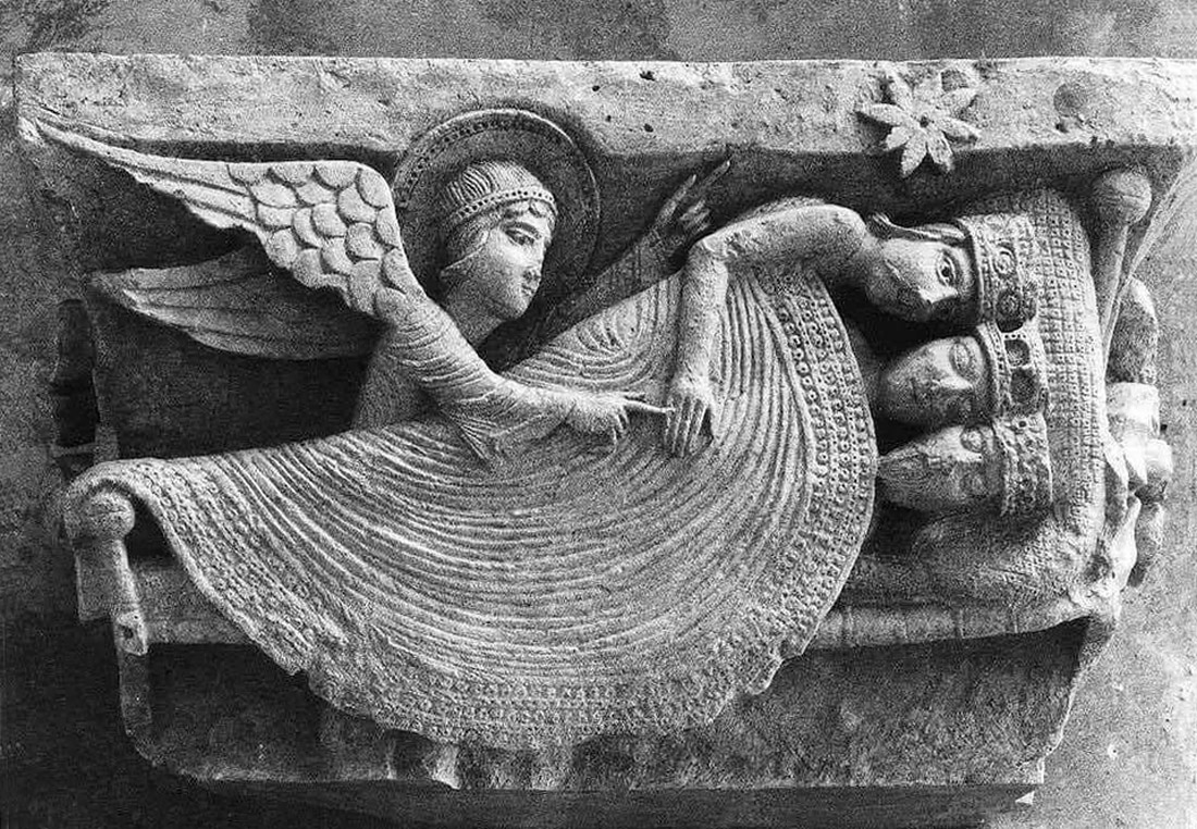 Ангел, будящий волхвов. Капитель собора Сен-Лазар в Отёне (XII в.)