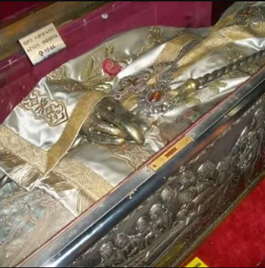 Подпись к иллюстрации: Мощи свт. Феоны Солунского. Монастырь св. великомученицы Анастасии Узорешительницы. Центральная Македония, нома Фессалоники, город Василика.Эта иллюстрация использована на страницах: