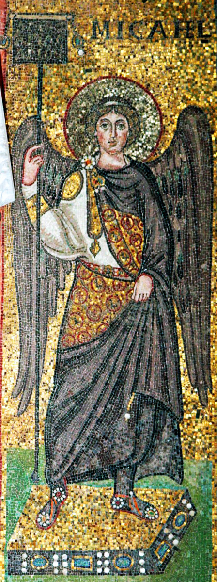 Архистратиг Михаил. Мозаика в церкви Сант-Апполинаре-ин-Классе в Равенне (ок. 549 г.)
