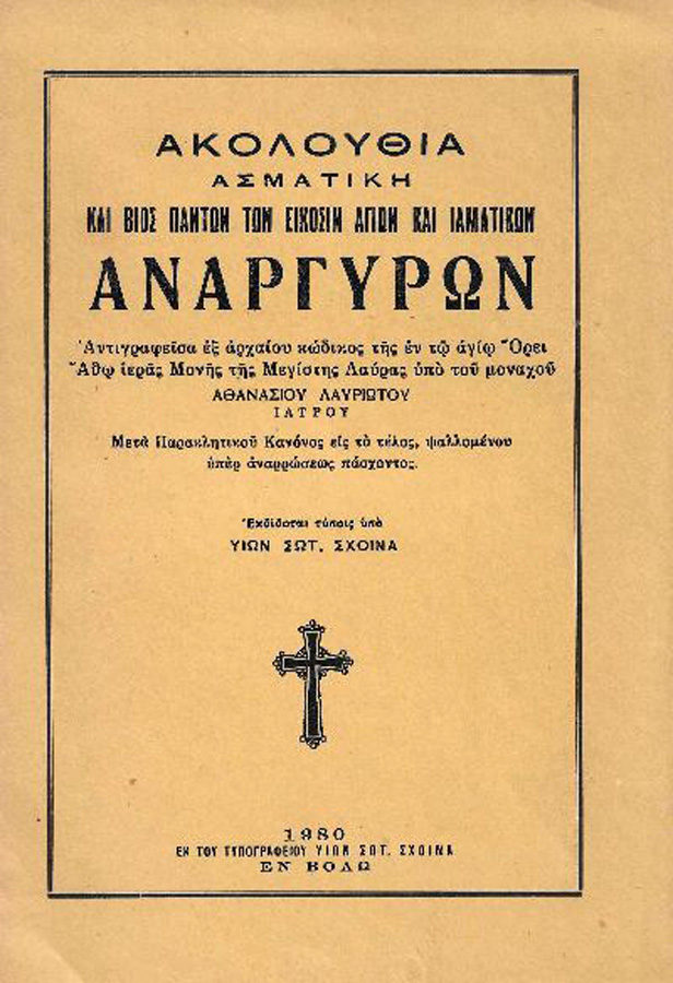 Обложка первого издания древней греческой службы Собора бессребреников (1980 г.)