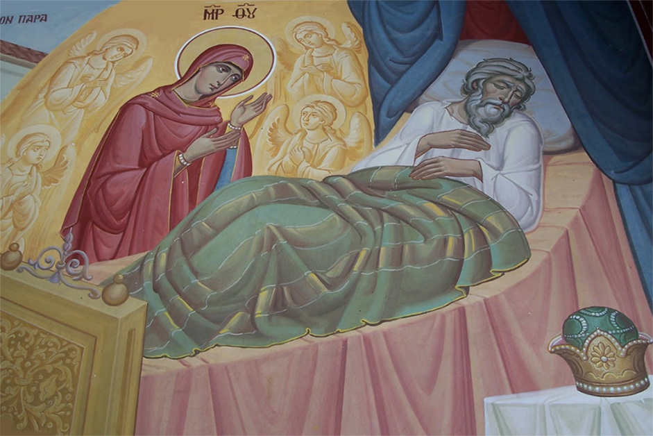 Подпись к иллюстрации: Явление Пресвятой Богородицы императору Алексею I Комнину. 1989 г. (Морошан М. и Г.). Роспись галереи. Киккский монастырь, остров Кипр.Эта иллюстрация пока нигде не использована