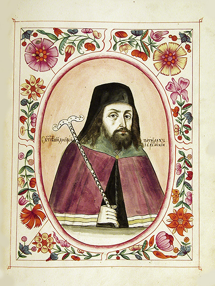 Досифей II Нотара, патриарх Иерусалимский. Миниатюра из «Титулярника». 1672 г. (РГАДА)