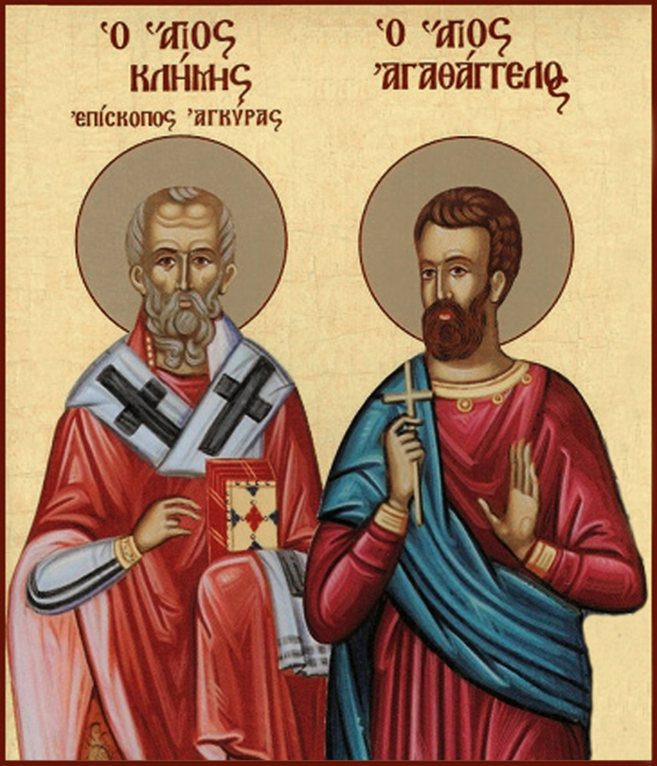 Сщмч. Климент, еп. Анкирский, и ученик его мч. Агафангел. Икона (фрагмент)