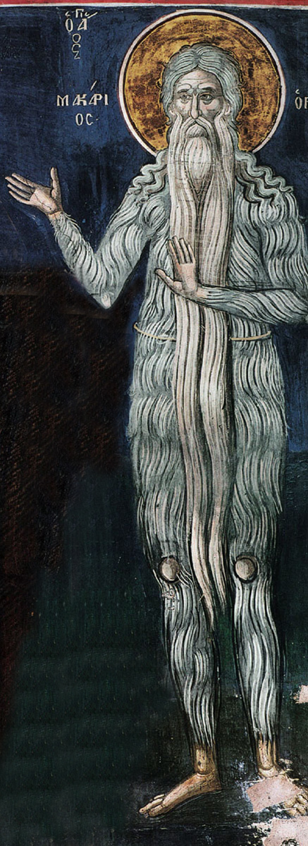 Прп. Макарий Великий. Фреска (автор Зорзис Фука, 1547 г.). Афон, монастырь Дионисиат