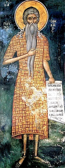 Подпись к иллюстрации: Прп. Павел Фивейский. Фреска (фрагмент). Иконописец Дзордзис Фукас. XVI век. Монастырь Дионисиат. Афон.Эта иллюстрация пока нигде не использована