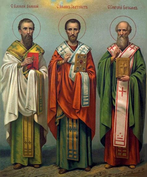 Подпись к иллюстрации: Святители Василий Великий, Иоанн Златоуст и Григорий Богослов. Хромолитография типографии Ефима Фесенко, 1897 годЭта иллюстрация пока нигде не использована